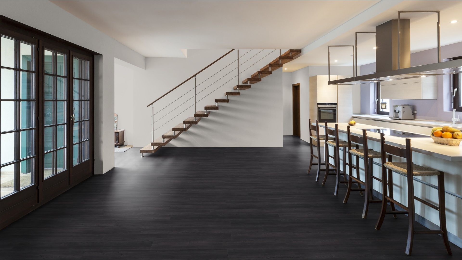 Daarna kunnen we de vloer afwerken met plinten en/of het plaatsen van een fraaie, geïntegreerde entreemat.